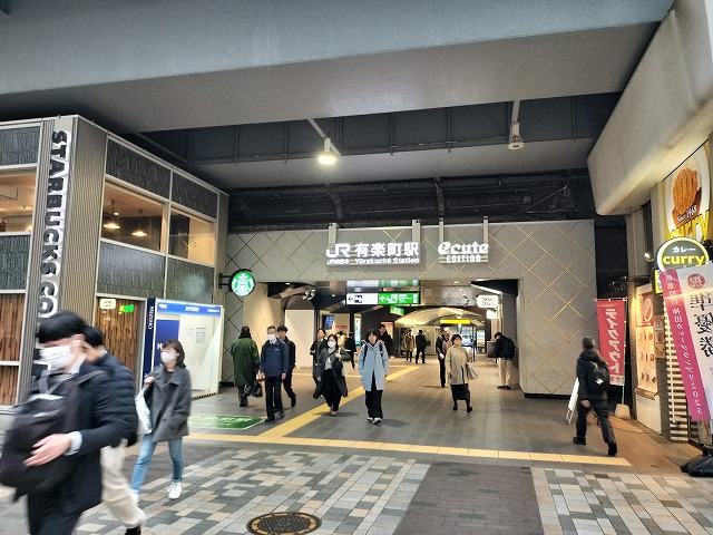 JR有楽町駅前。今日はいつもよりかなり早く、8時前に来たので、人の数もまばらです |