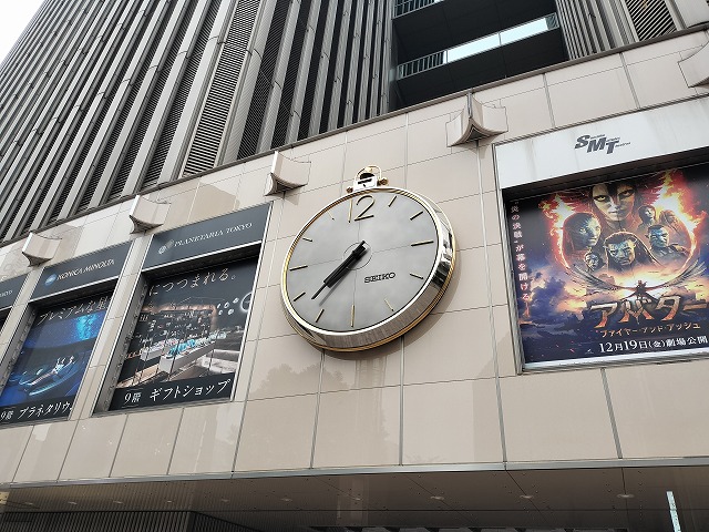 有楽町マリオンの時計は7:40分。年末ジャンボは行列がすごいので、相当早めに来てみました |