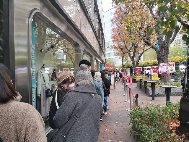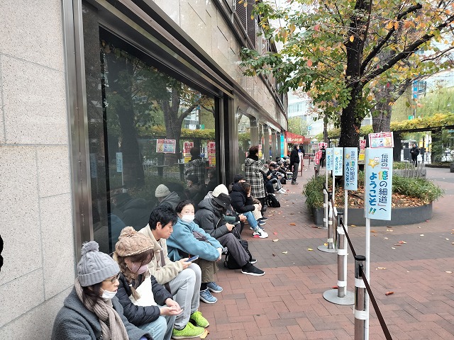 行列も見に来てみると、やっぱりここまで来ています。2時間待ちですね。 |